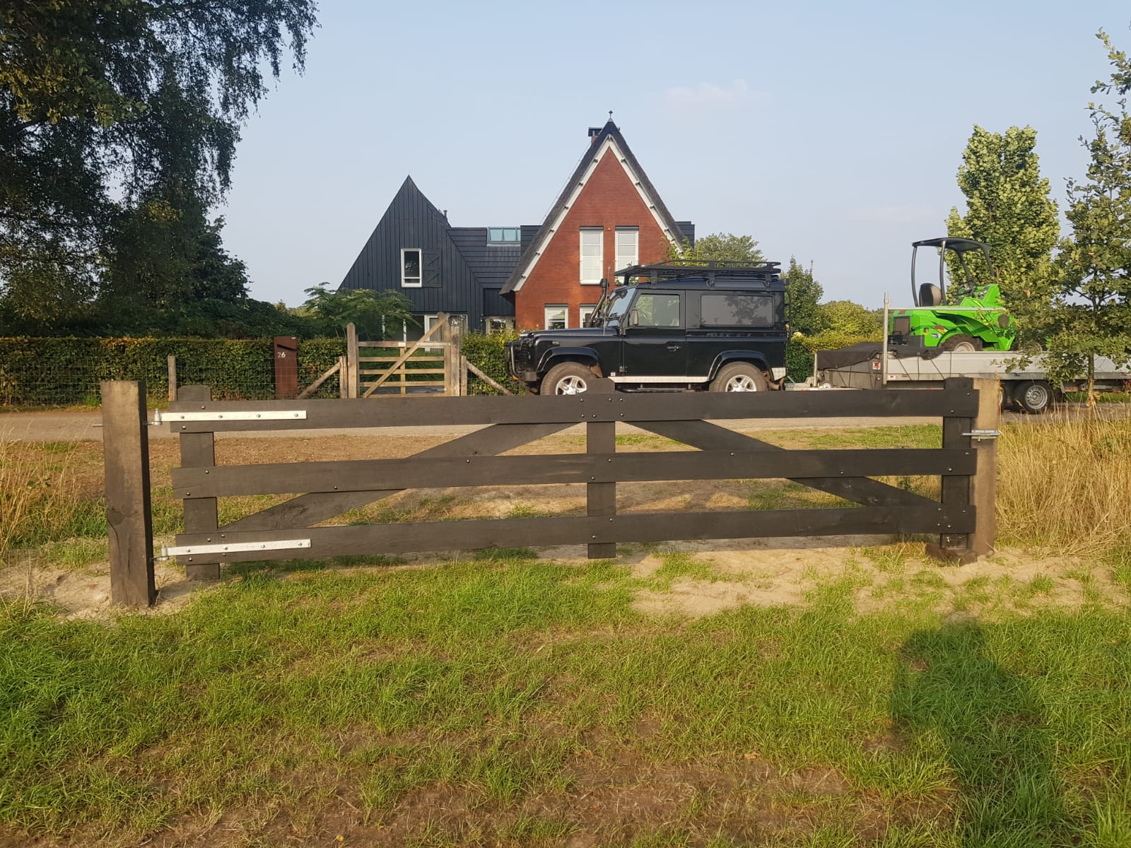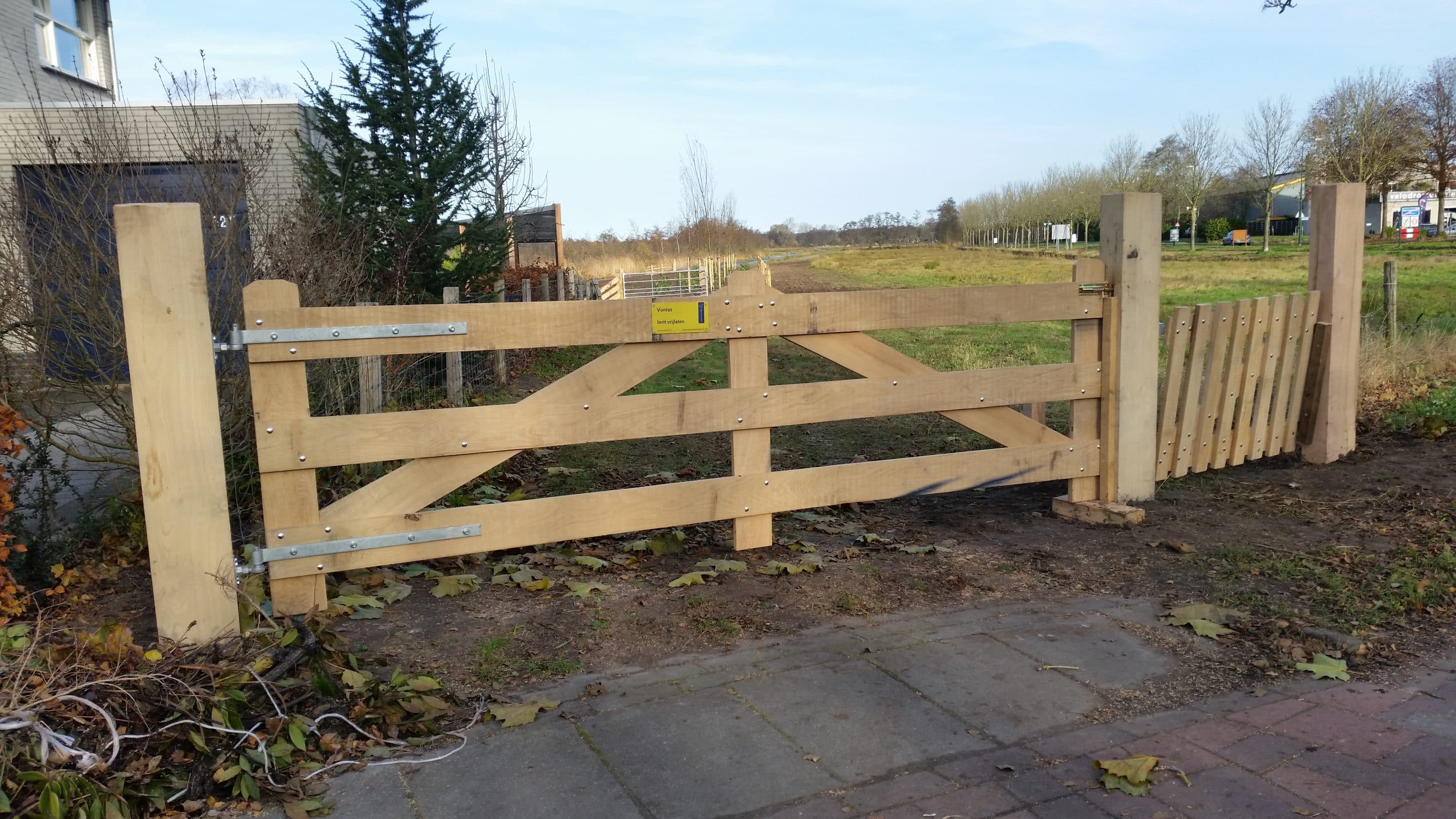Landhek Kleverkamp 18 van onbehandeld eikenhout, voorzien van verzinkt hang- en sluitwerk