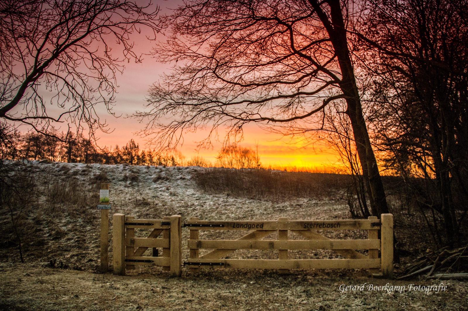 Een Landhek voorzien van gravering, gecombineerd met een loophek