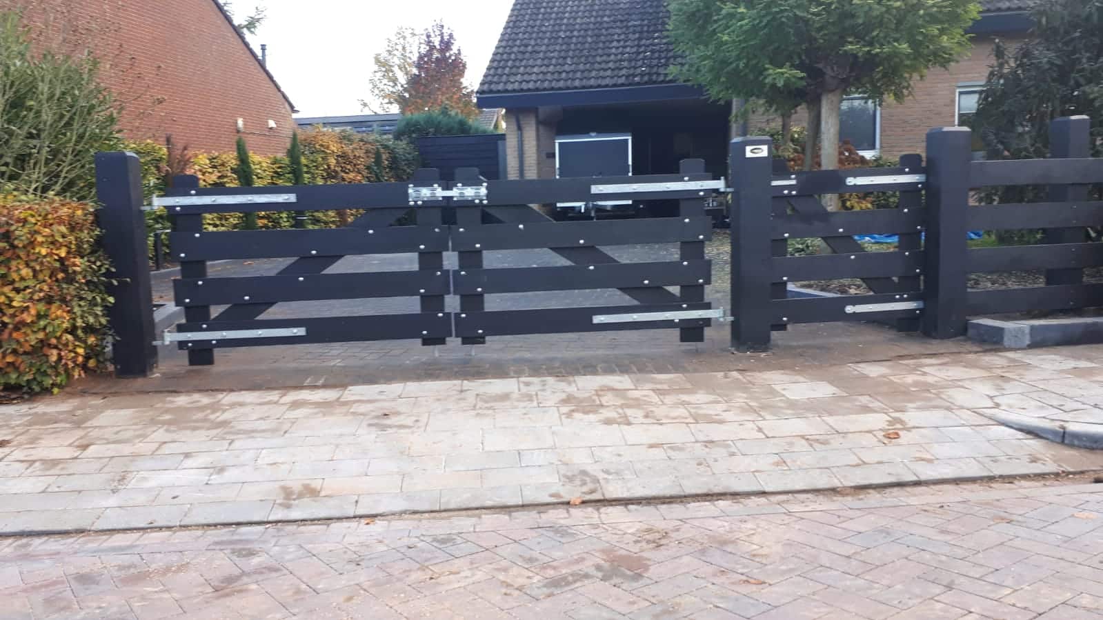 Toegangspoort Kleverkamp 15 in zwart gebeitste uitvoering