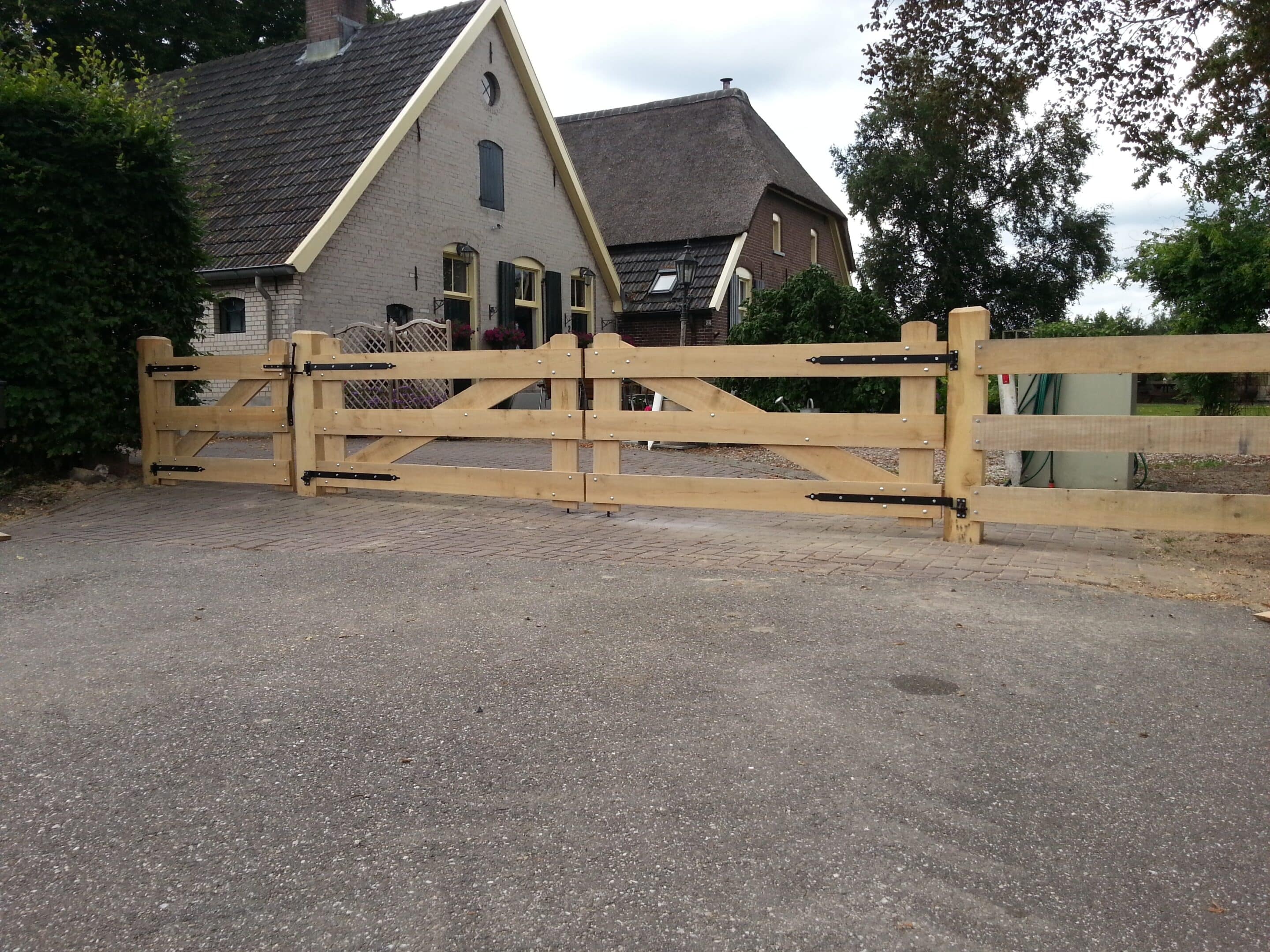 Met 3 horizontale planken van ieder 18 cm breed krijgt u een poort van eikenhout met robuuste uitstraling. Dit model wordt om deze rede het meest gekozen.