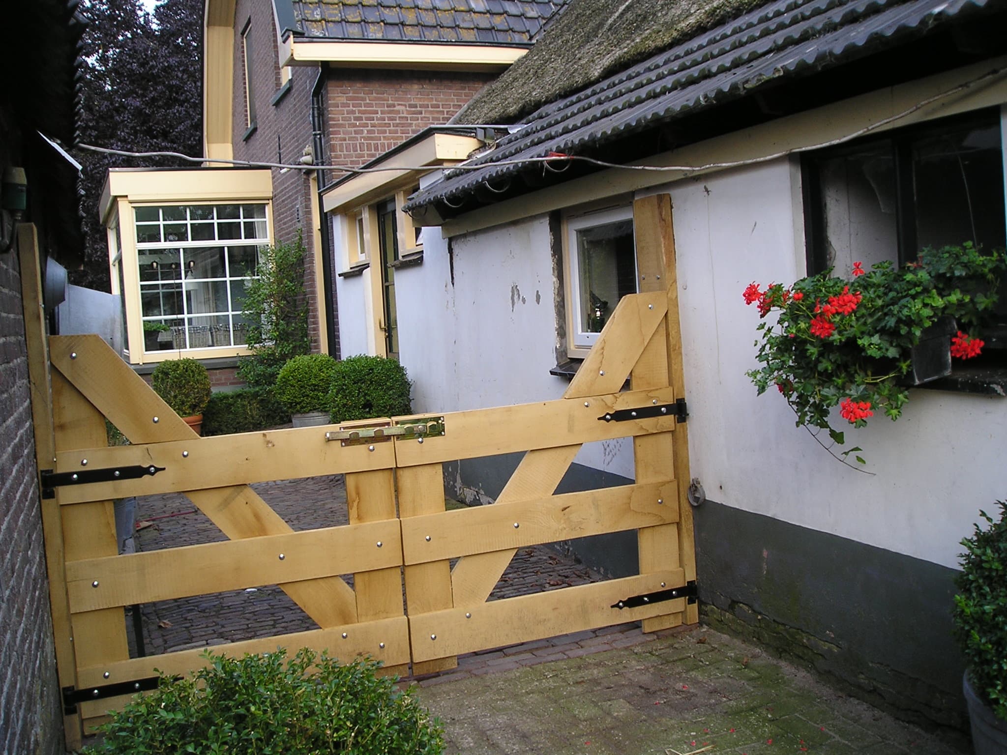 Toegangspoort Kleverkamp 18, voorzien van houten overslag voor extra landelijke uitstraling