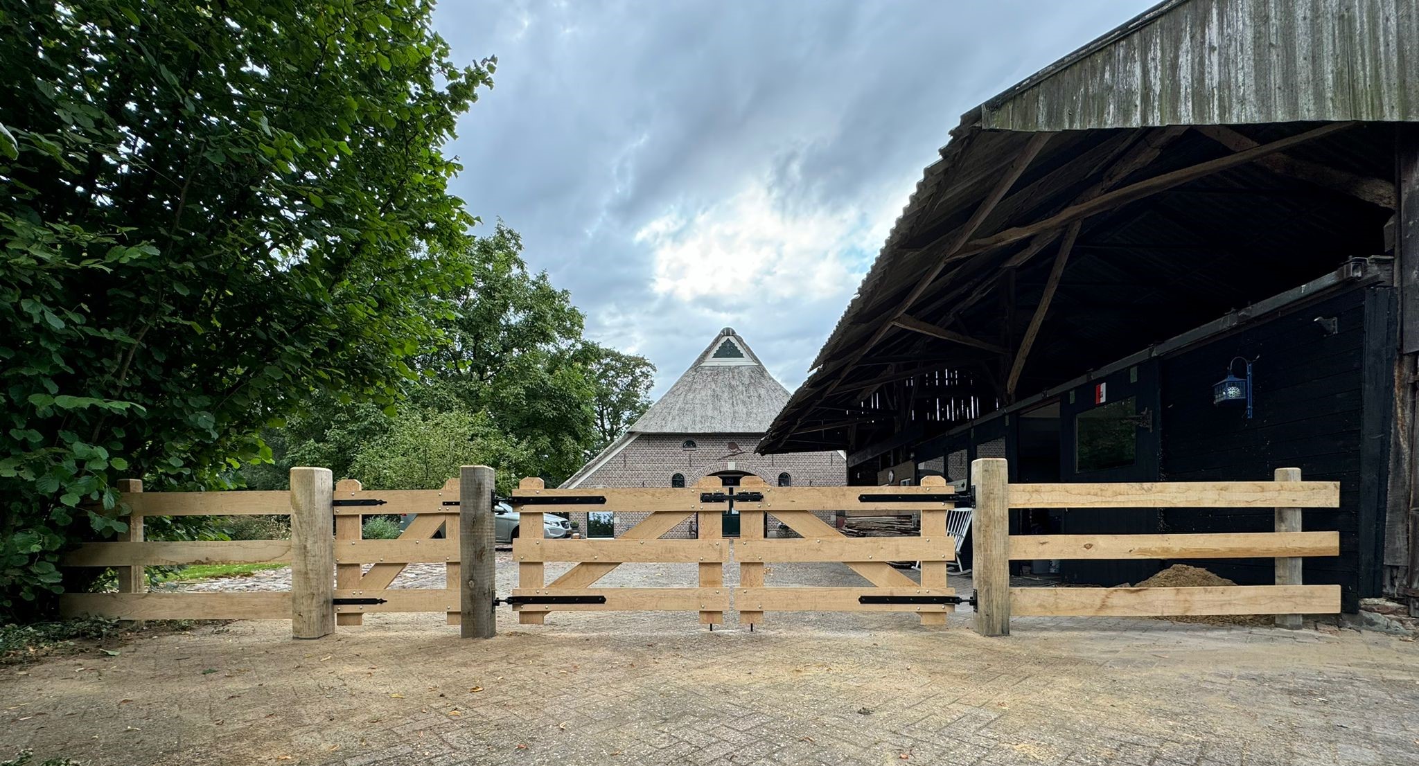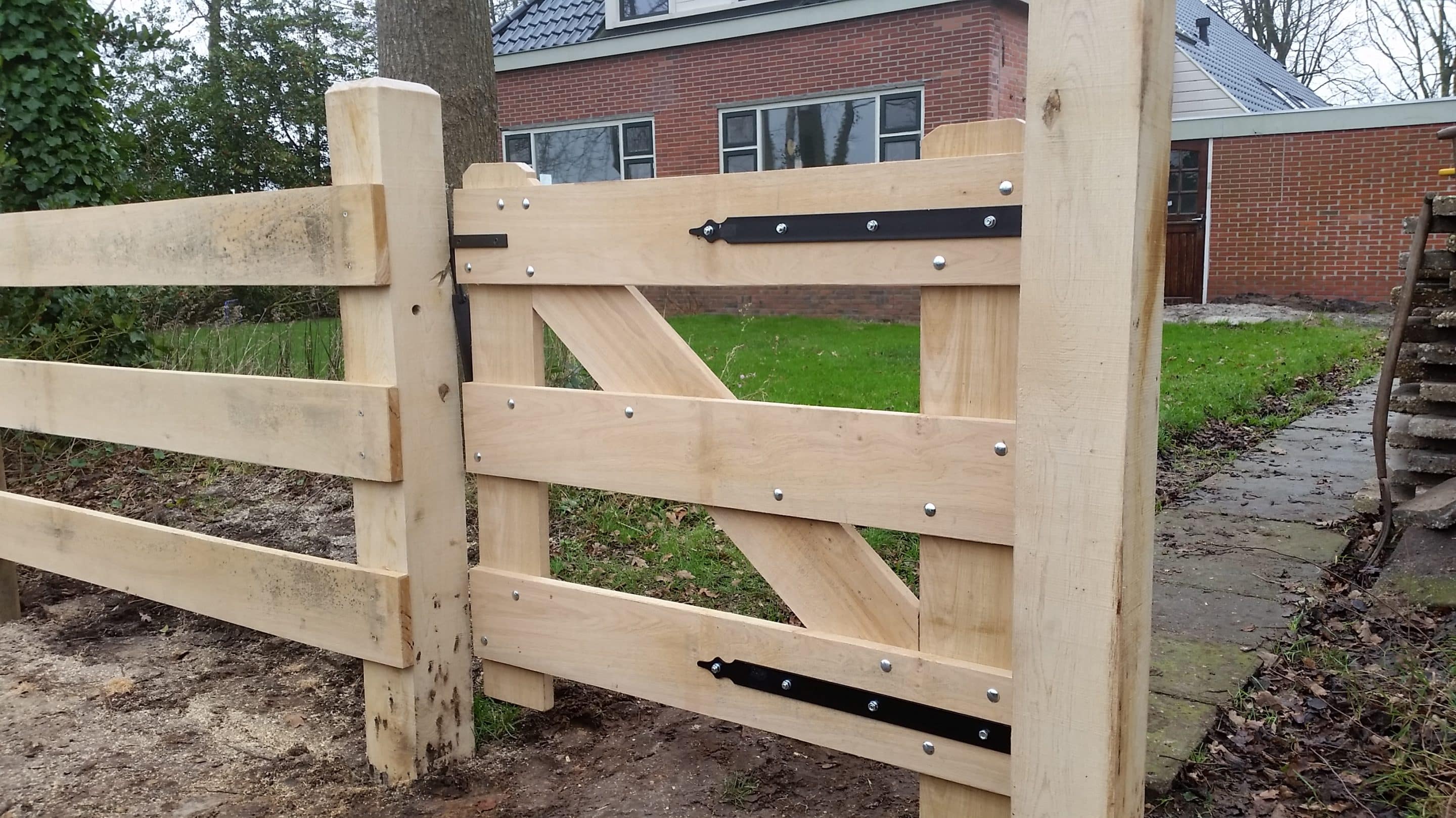Hekwerk standaard uitgevoerd in blank onbehandeld eikenhout, of voorzien van zwarte beits