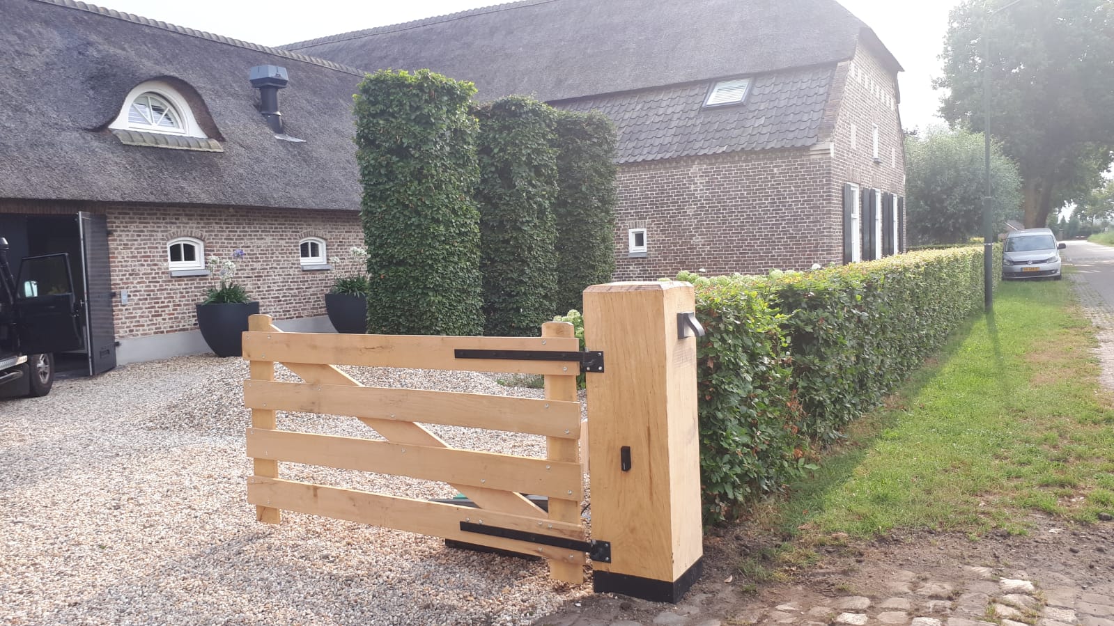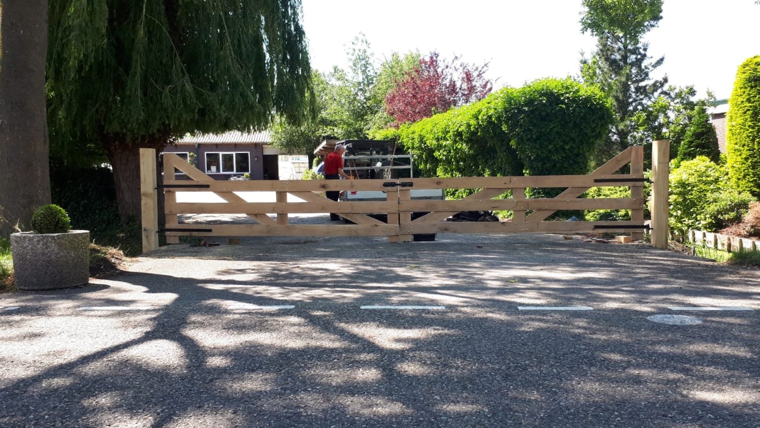 Hier vindt u een greep uit onze houten toegangspoorten dat geheel op klantwens op maat is gemaakt.